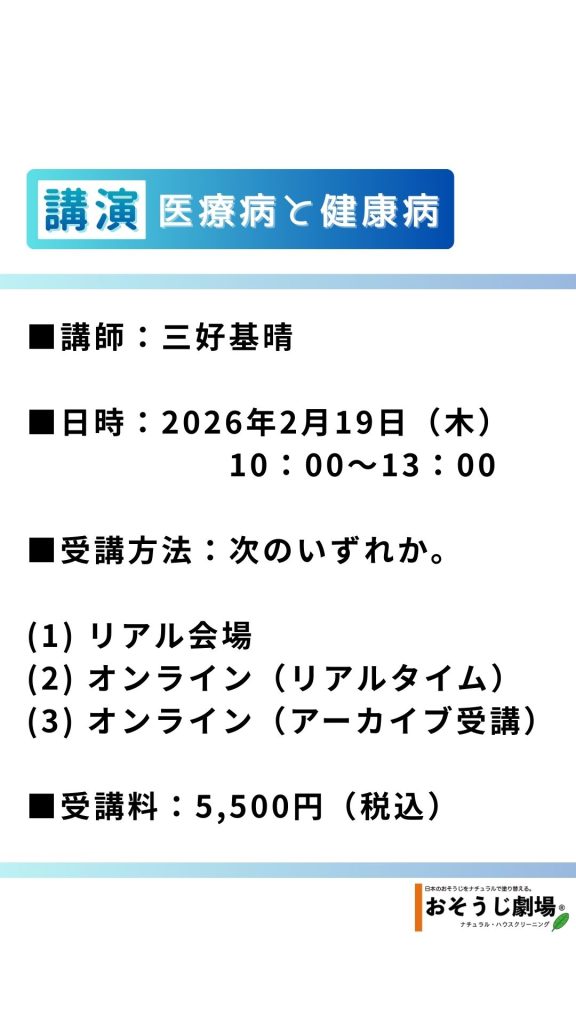 ■講演「医療病と健康病」の御案内 2026年2月19日(木)